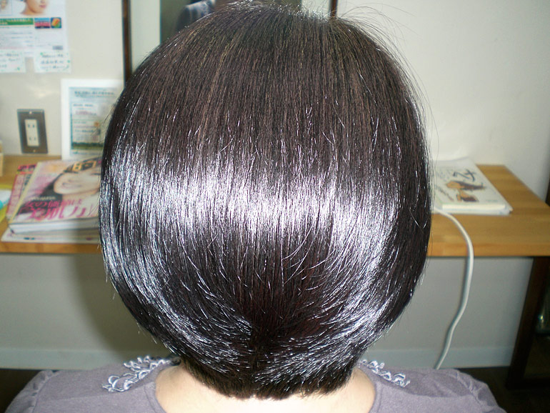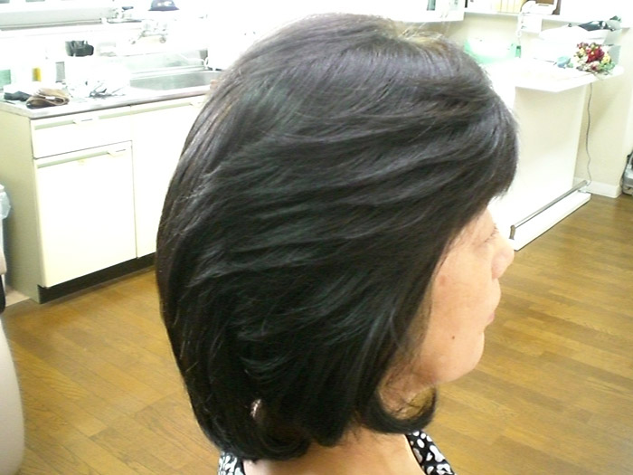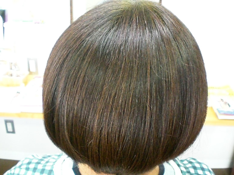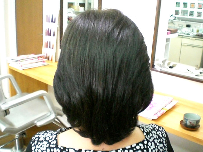 月に1度ご来店いただいているリピーターさんです。 あいだでも自宅でヘナ染めされています。つやが出てとてもきれいな髪です。セットもとてもしやすい!と喜んでくださっています。